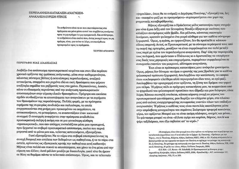 Ιδού μια υπόθεση: ήδη στις απαρχές του τεχνικού πολιτισμού κάνει την εμφάνισή της η ανθρωπόκαινος εποχή. Η σύγχρονη ιδέα ότι η ανθρώπινη δραστηριότητα επηρεάζει και διαμορφώνει τη γεωλογική συγκρότηση και την εξέλιξη της γης ενυπάρχει ήδη στα θραύσματα των προσωκρατικών κοσμολογιών. Στις θεωρητικές υποθέσεις του Αναξίμανδρου ανευρίσκεται η σύλληψη του κόσμου ως τεχνικού κατασκευάσματος, όπως είναι μια κυλινδρική κολόνα ή ένας μεταλλευτικός κλίβανος.