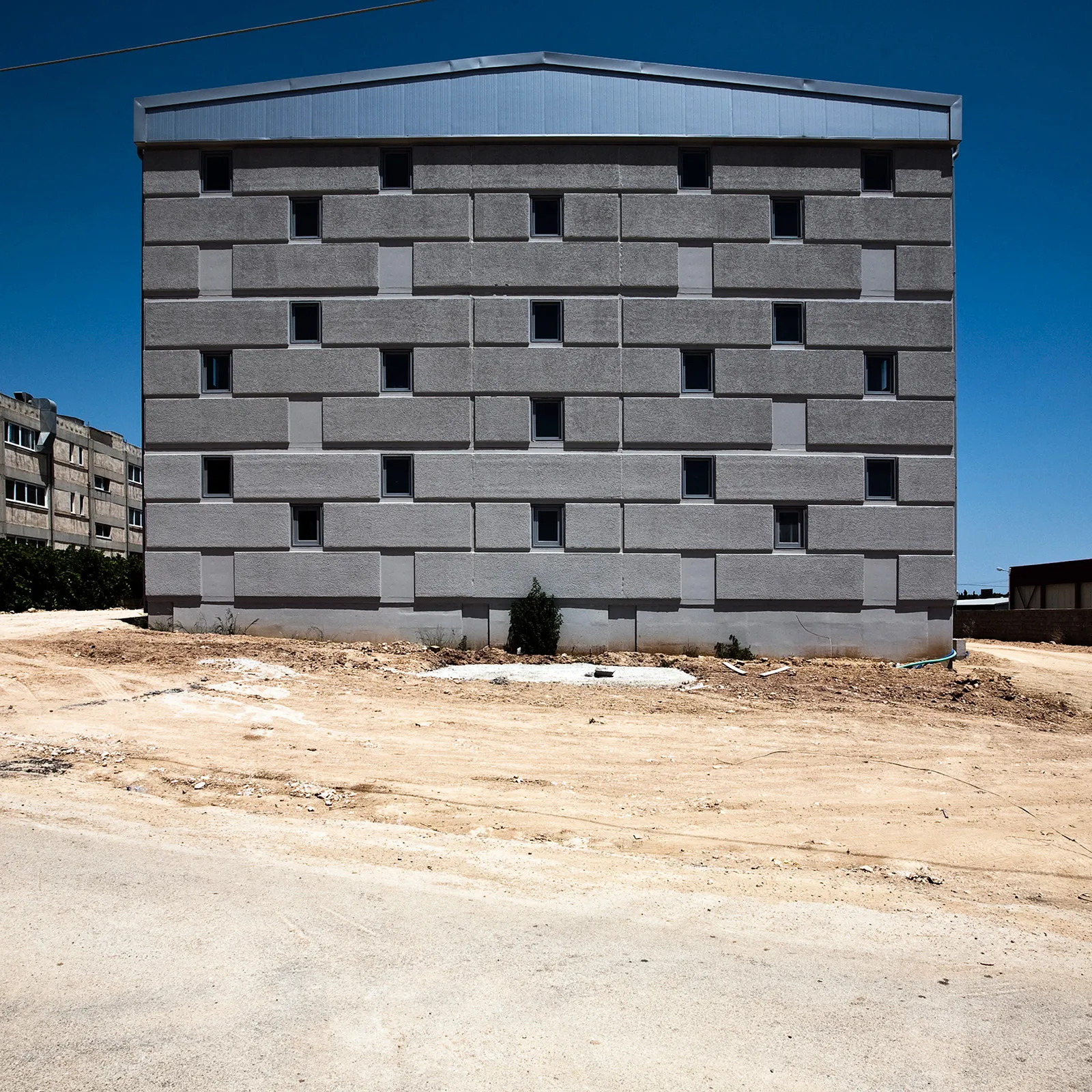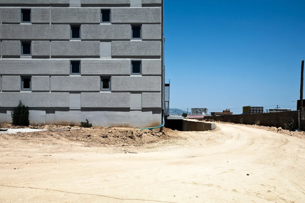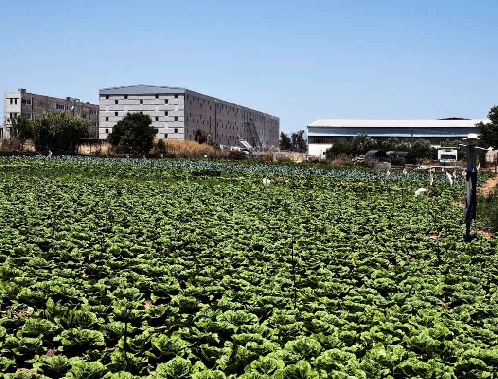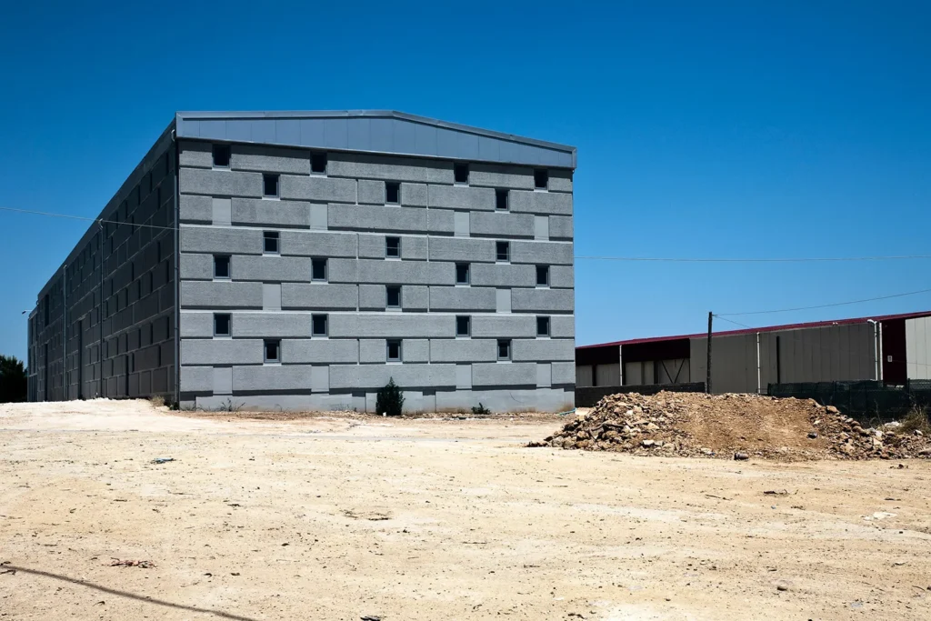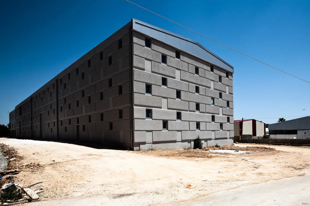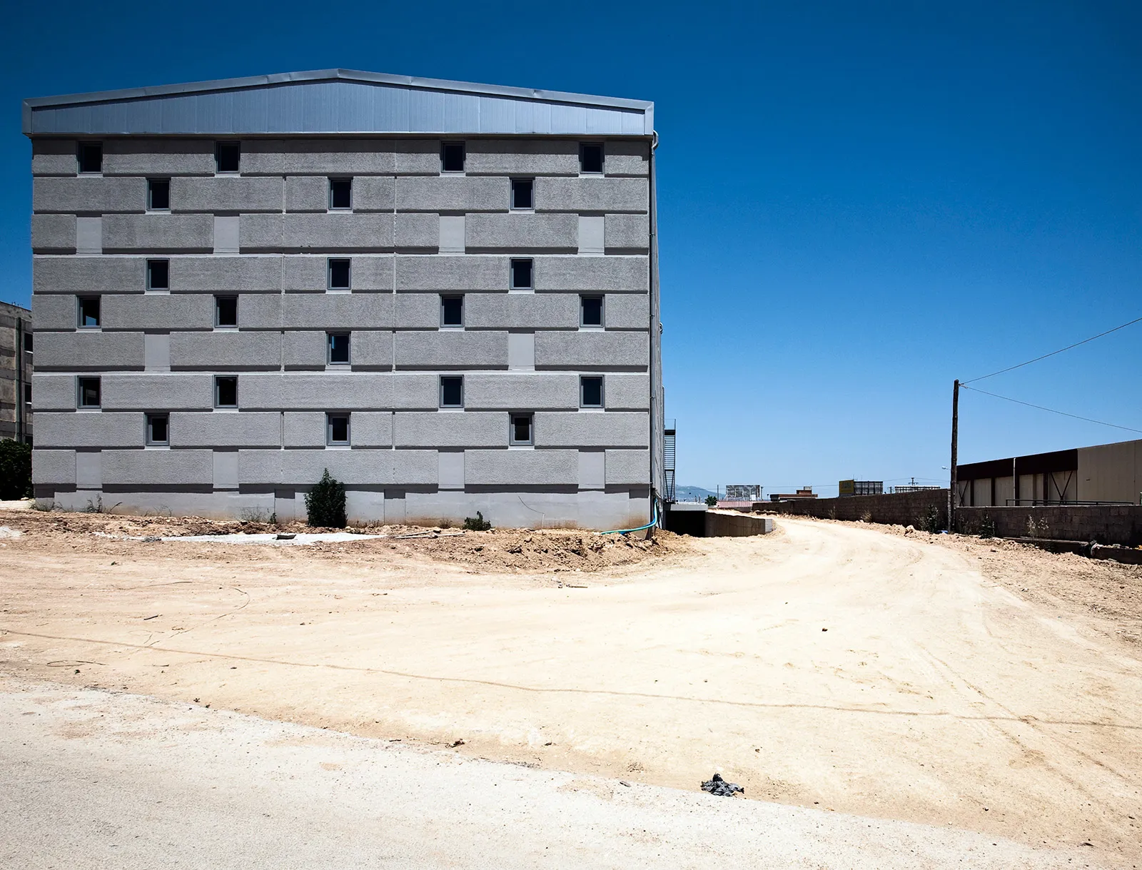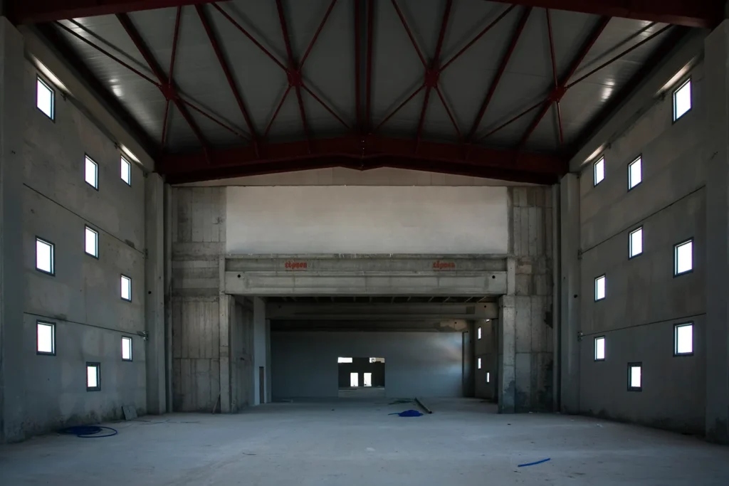 Σε μια περιοχή με άνιση και εντατική οικοδόμηση, στις παρυφές της Αττικής Οδού, στο Κορωπί, έχει οικοδομηθεί νέο βιομηχανικό κτήριο για τη στέγαση εκδοτικής επιχείρησης. Το κτήριο, συνολικής επιφάνειας 4.035 τ.μ. είναι προκατασκευασμένο με φέροντα προεντεταμένα στοιχεία, ανοίγματος 17μ., και τοιχία πληρώσεως από οπλισμένο σκυρόδεμα (3,20 x 7,00 μ). Το ενιαίο κτηριακό κέλυφος φιλοξενεί στο μεν προς τον δρόμο τμήμα του τους γραφειακούς χώρους, στο δε υπόλοιπο τους χώρους βιομηχανικής χρήσης. Το κτήριο-αντικείμενο εκλαμβάνεται ως μεγαλιθική δομή. Το χυτό μπετόν, η τεχνητή αυτή πέτρα, μορφοποείται στα καλούπια της προκατασκευής με την λογική ενός μεγαλιθικού τείχους που τυλίγει το κτήριο καταργώντας την τυπική κλίμακα των ορόφων. Ένθετα στη μεγαλιθική δομή διασπείρονται ομότροπα τα ανοίγματα του κτηρίου, για τον διάχυτο ηλιασμό και αερισμό των χώρων εργασίας.
