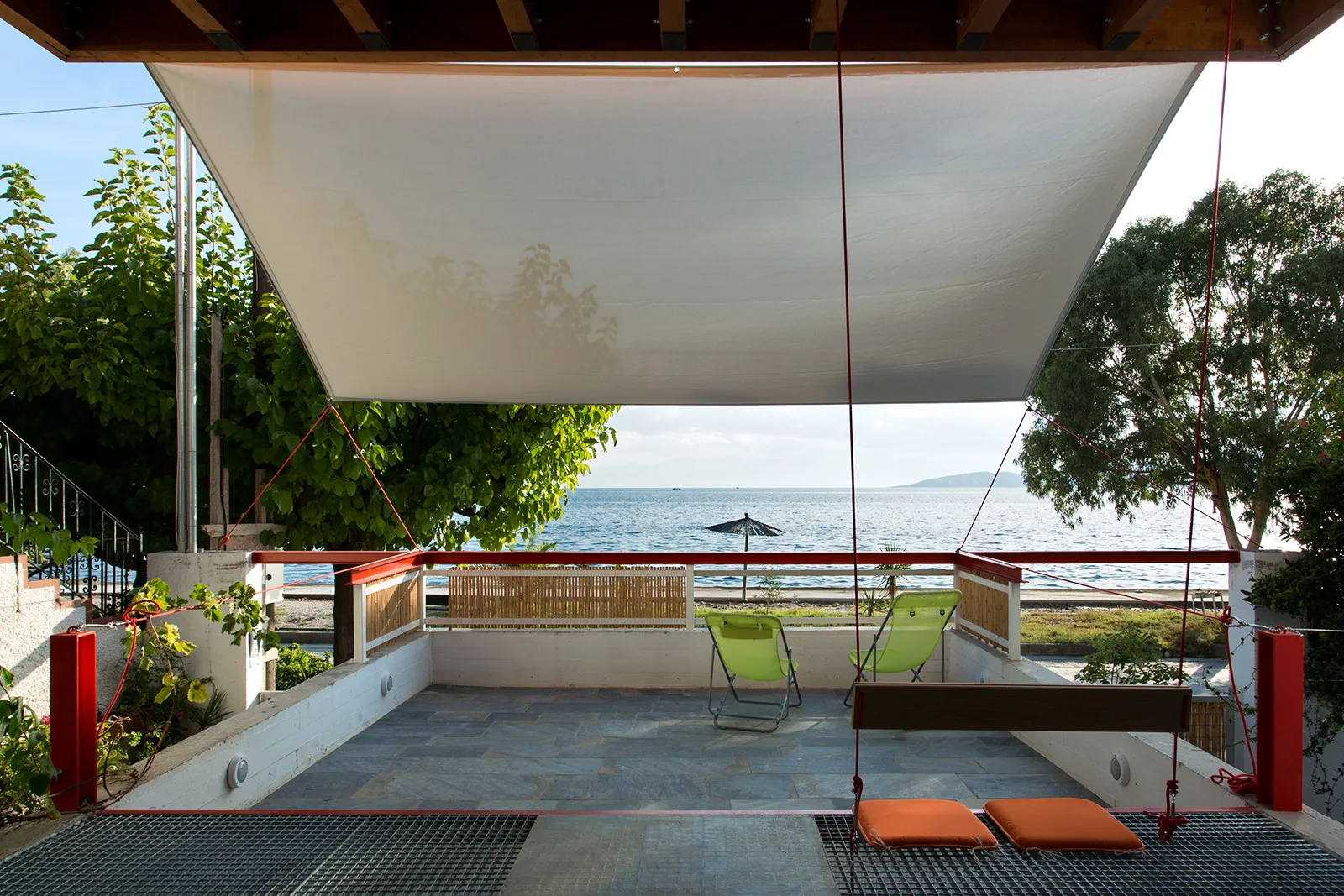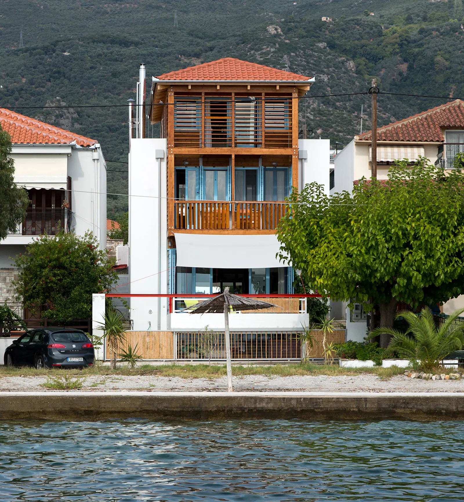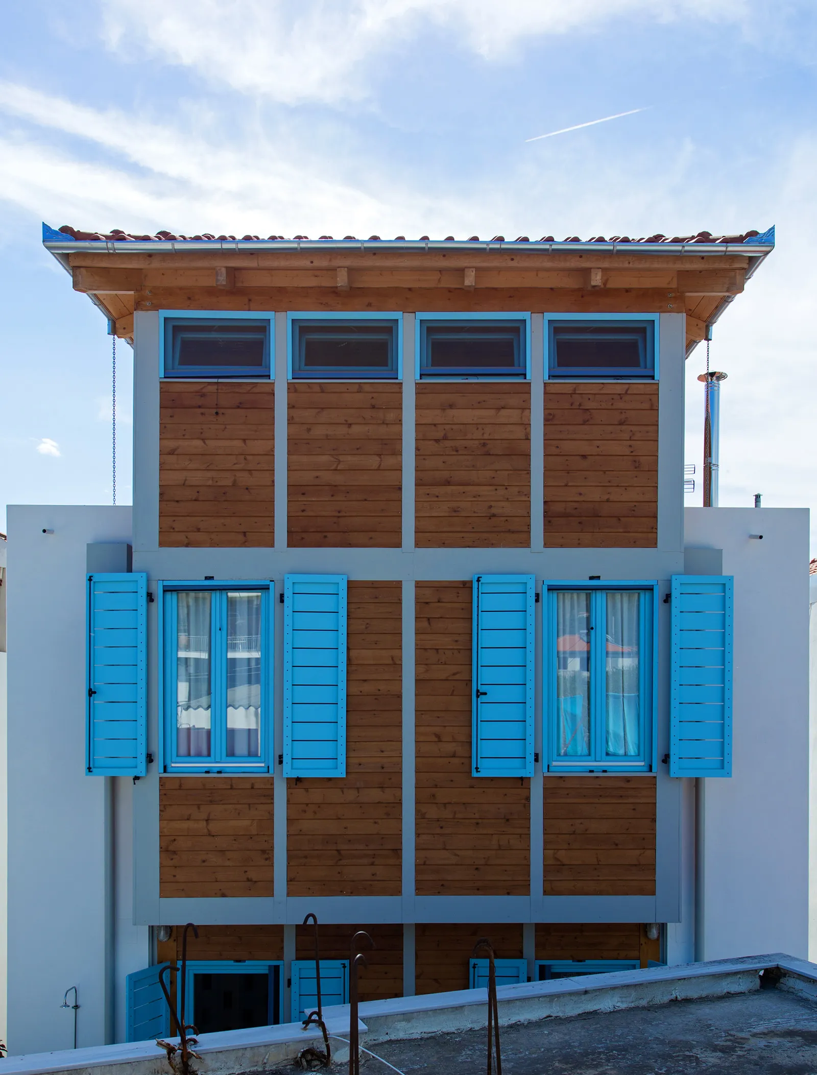 Στον οικισμό της Αγριάς, στην περιφέρεια του Δήμου Βόλου, κάτω από το Πήλιο και επάνω στην ακτογραμμή του Παγασητικού κόλπου, έχει οικοδομηθεί (2015) νέα διώροφη κατοικία. Το κτήριο αναπτύσσεται κατακόρυφα σε τέσσερα οριζόντια επίπεδα, περιλαμβανομένου και του υπογείου. Κατά το διαμήκη άξονα, από το βουνό (βόρεια) προς τη θάλασσα εμπρός (νότια), η κατασκευή ορίζει έναν ενιαίο χώρο κατανεμημένο σε τρία ίσα μέρη και έναν υπαίθριο, τέταρτο, ημίσειας διάστασης, στην νότια απόληξη του άξονα.