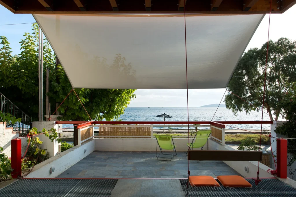 Το κτιριολογικό πρόγραμμα ανταποκρίνεται σε δυνατότητα διαμονής δύο έως έξι κατοίκων. Οι διαφορετικοί υπο-χώροι της κατοικίας ορίζονται από τη δυνατότητα μη μόνιμων διαχωρισμών. Έτσι προκύπτει ένα ημι-διαχωριζόμενο μονόχωρο σπίτι. Η ιδιωτικότητα υπηρετείται από κινητά, μαλακά χωρίσματα από υλικά όπως πανί ή καλάμια. Τα χωρίσματα είναι κάθετα στον βιοκλιματικό άξονα φωτισμού και αερισμού, από το βοριά προς τον νοτιά, από το βουνό προς τη θάλασσα.