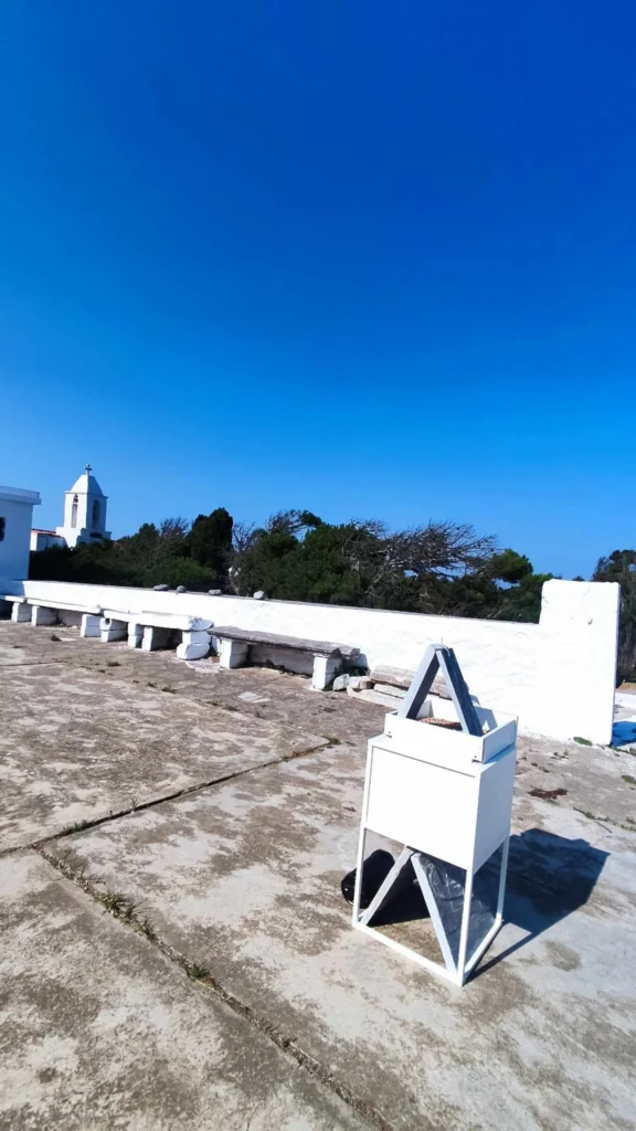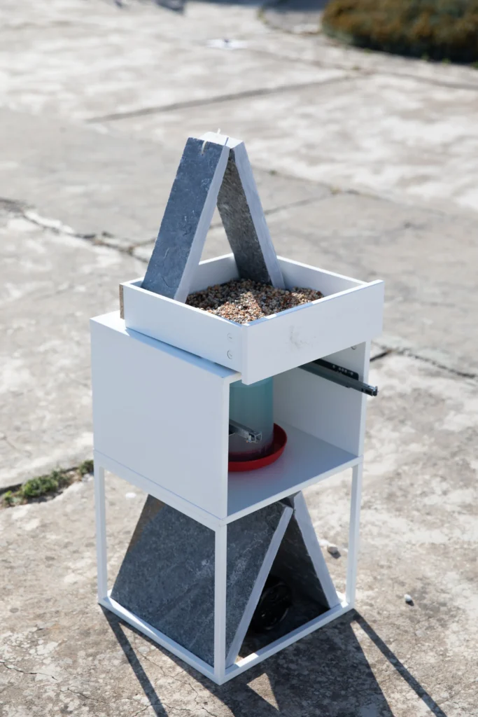 Υλικά: Σίδερο, μοριοσανίδες, πλάκες Καρύστου, τροφή πουλιών, νερό