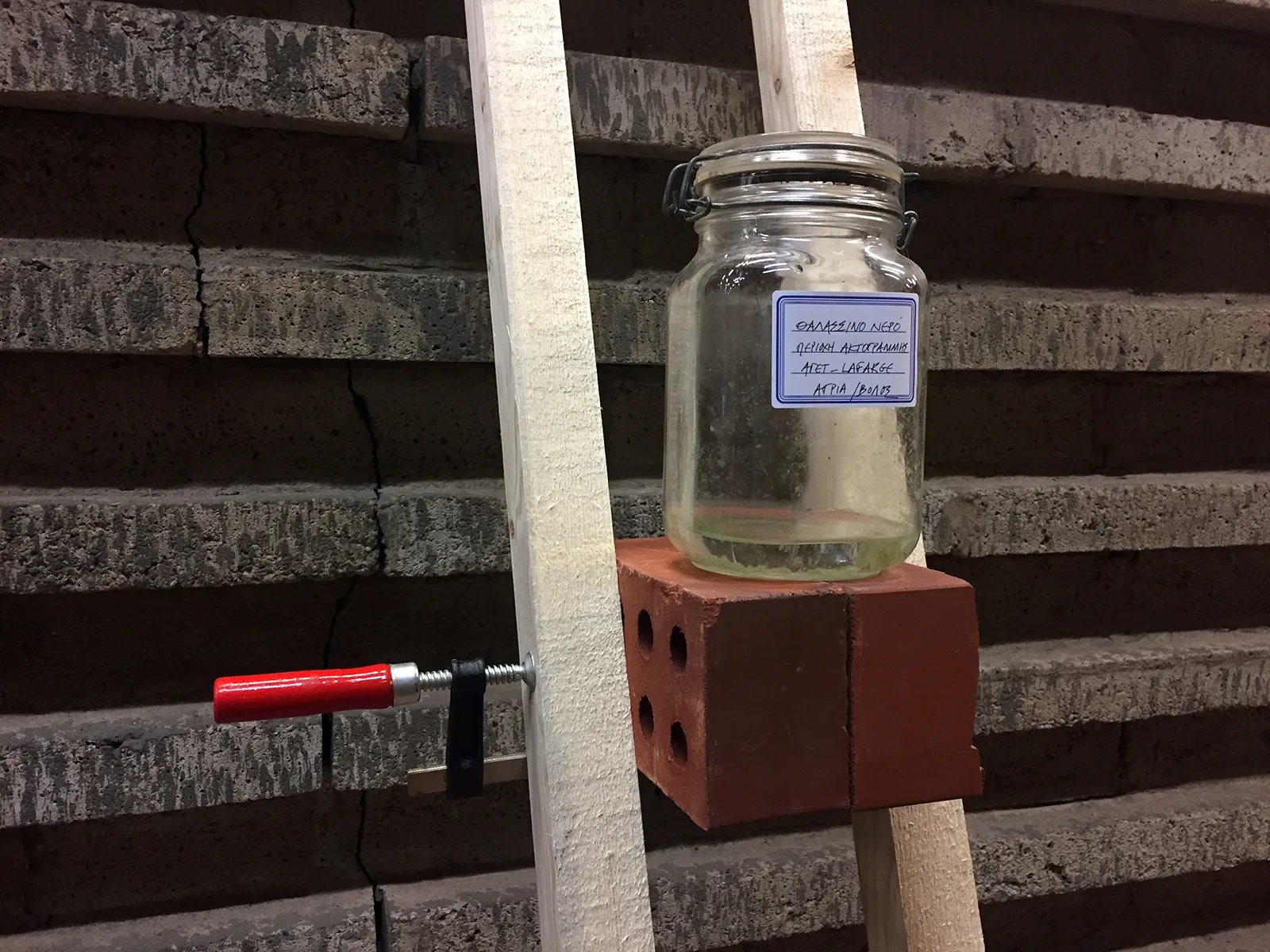 Ένας κάτοικος του Βόλου βρίσκεται ενώπιον ενός σωματικού συμπτώματος: Όταν κυκλοφορεί στη πόλη και ειδικά όταν έχει σχετική άπνοια, νιώθει ένα κάψιμο στα μάτια. Το σύμπτωμα εμφανίζεται επίμονα και η ιατρική διάγνωση δεν μπορεί να εντοπίσει την αιτία του. Έτσι αποφασίζει να μαζέψει τεκμήρια από την καθημερινή του διαβίωση και υλικά ίχνη στο περιβάλλον, τον φυσικοτεχνητό του περίγυρο, που μπορεί να σχετίζονται με την επίμονη πάθηση των ματιών. Μαζεύει υλικά όπως: φύλλα δένδρων, νερό, τον αέρα που αναπνέουμε, γή, γάλα και περιττώματα από αμνοερίφια που βόσκουν στην περιοχή, δοκίμια μπετόν, καύσιμη ύλη απορριμάτων rdf. Tα συλλεγμένα στοιχεία αποτελούν τα υλικά μιας διερεύνησης των αιτιών της παθογένειας του, που θα προκύψει, υποτίθεται, από τη χημική ανάλυσή τους. Αλλά όχι μόνο. Αποτελούν μια συλλογή τεκμηρίων από τη λειτουργία ενός εργοστασίου τσιμέντου εν μέσω της πόλης και της επιρροής της λειτουργίας του στον αστικό μεταβολισμό. Ίσως οι έρευνες για τη χημική σύσταση των συλλεγμένων υλικών από ερευνητικά κέντρα, ντόπια ή διεθνή να μην αποδώσουν μια οριστική ερμηνεία της σχέσης της λειτουργίας τους εργοστασίου με την υγεία των κατοίκων της πόλης. Σε κάθε περίπτωση όμως η συλλογή συγκροτεί ενα προσωπικό μουσείο, ένα είδος ανάμνησης, ίσως τραυματικής από τη ζωή στην πόλη του Βόλου. Το προσωπικό μουσείο, από ένα εργοστάσιο που ακόμα βρίσκεται σε λειτουργία, τοποθετείται σε μια έκθεση, στον χώρο της πρώην κεραμοποιίας του “Τσαλαπάτα”. Μας θυμίζει πως ό,τι ανήκει στο παρελθόν, όσο ζοφερό κι αν υπήρξε, μπορεί να εξιδανικεύεται από τη μετατροπή του σε μουσειακό μηχανισμό. Και σε κάθε περίπτωση, για το ένα ή το άλλο εργοστάσιο υπάρχει ένας χρόνος βιωσιμότητας και ένας περιορισμένος χρόνος ζωής. Το παρόν είναι η αρχαιολογία του μέλλοντός μας.