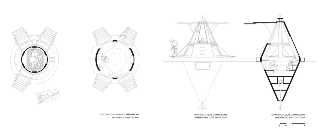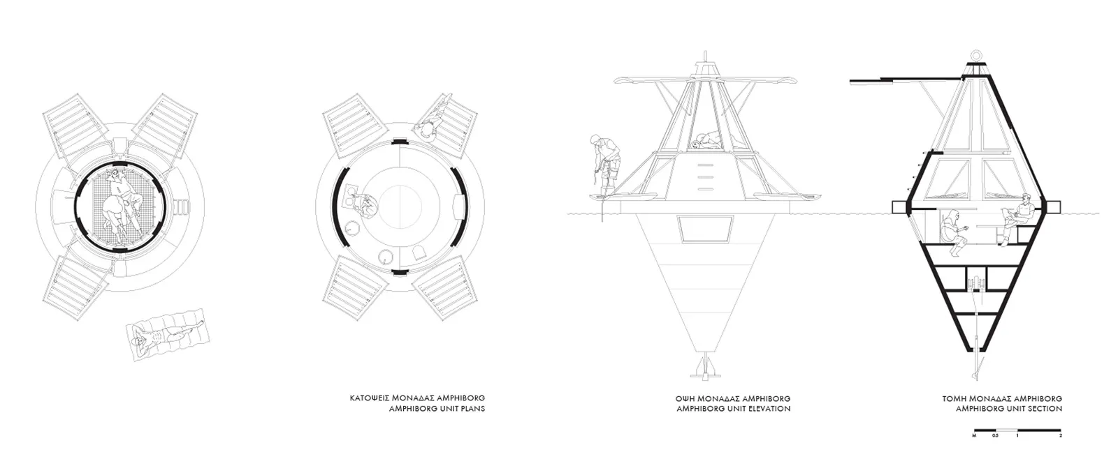 Η πρόταση επικαλείται μια επικούρεια αντίληψη λιτού βίου και εκστατικού ηδονισμού. Το φαντασιακό τής ζωής πλάι στη θάλασσα, που νοηματοδοτεί τον παραθερισμό, οδηγείται στα όριά του, καθώς το υποκείμενο ενεργοποιείται σε μια αμφίβια συνθήκη ζωής. Διερευνώνται οι όροι κατοίκησης του πλωτού μέσου, ως πεδίου της αμφίβιας ζωής. Το μέλλον της αρχιτεκτονικής συνδέεται με την ποικιλόμορφη και άγνωστη ακόμα δυνατότητα κατοίκησης της θάλασσας. Αυτή η τεχνική δυνατότητα προοικονομεί μια νέα εμπειρία, όπου το άυλο φαντασιακό του cyborg αποκτά την υλικότητα του νερού στη συνθήκη κατοίκησης του amphiborg.