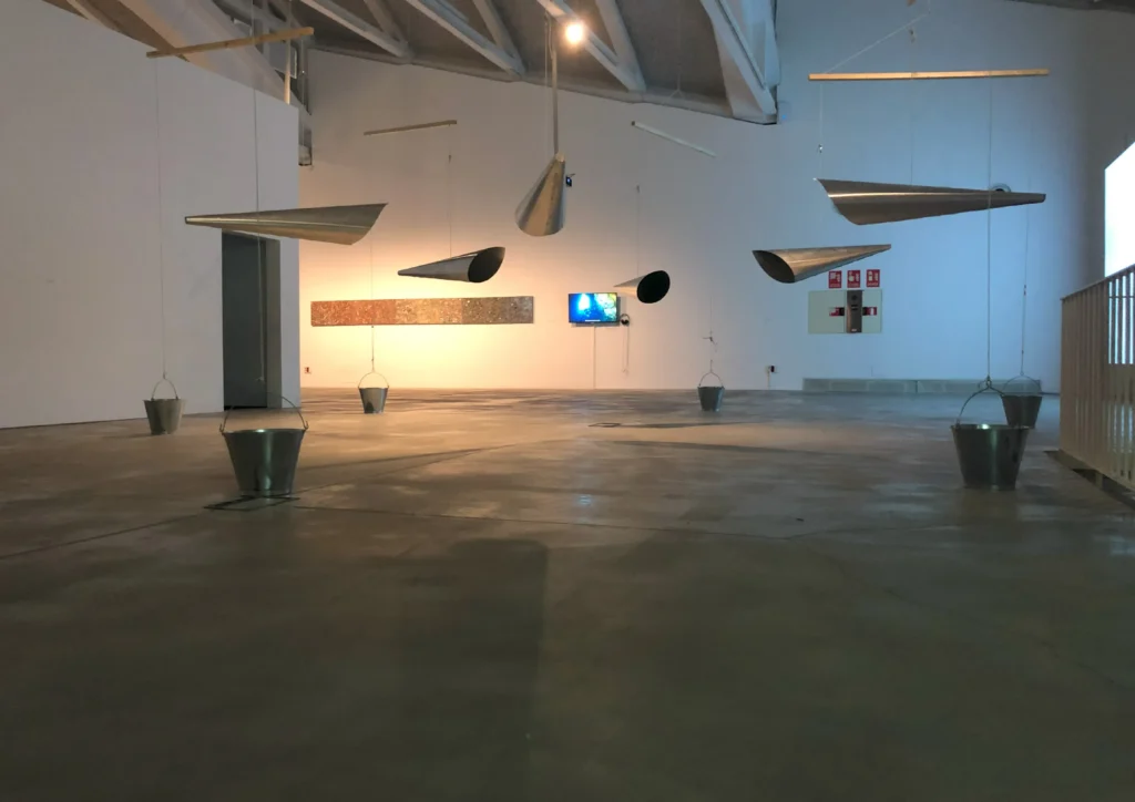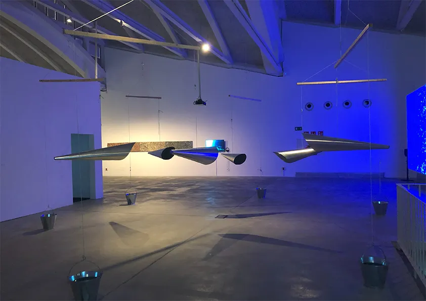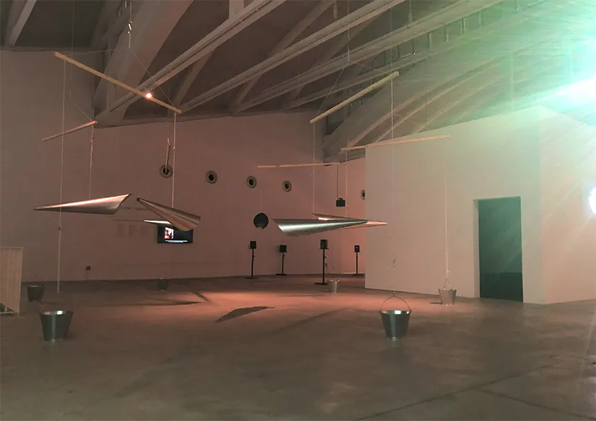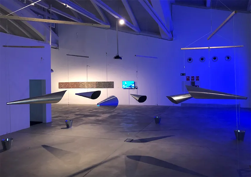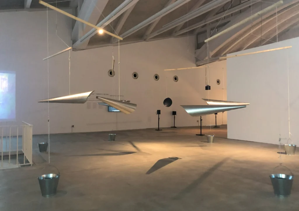 Η αναπνοή θεωρείται στοιχειώδης πράξη επικοινωνίας, ακόμη και μια προγλωσσική μορφή διανοητικής ή ψυχικής έκφρασης. Ο Ενισχυτής της Κοινής Αναπνοής _Common Breath Amplifier (CO.BR.A) είναι μια κυκλική εγκατάσταση κρεμαστών χωνιών που λειτουργούν ως φυσικά μεγάφωνα για να μοιράζονται την ανθρώπινη αναπνοή και τον ήχο των φωνών στο χώρο ανάμεσά τους. Τα υποκείμενα της εγκατάστασης μόλις συγκεντρωθούν και εφαρμόσουν το στόμα τους στο στόμιο ακούγεται ενισχυμένη η αναπνοή τους από τους άλλους, στο μεταξύ τους διάστημα. Όλες οι αναπνοές μπορούν να συγκεντρωθούν ως συνολική ηχητική μάζα που κινείται στον κοινό χώρο από σώμα σε σώμα.
